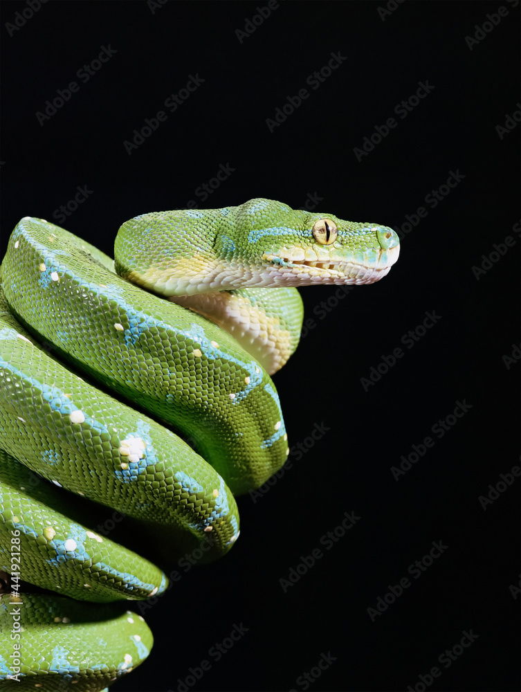 Green Tree Python Snake Isolated On Black Background High Resolution Stock Photo Adobe Stock